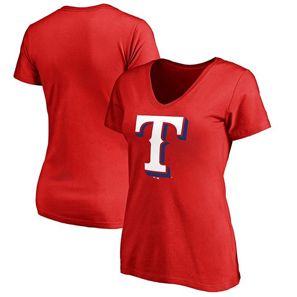 Women S Red Texas Rangers Primary Logo 2 V Neck T Shirt