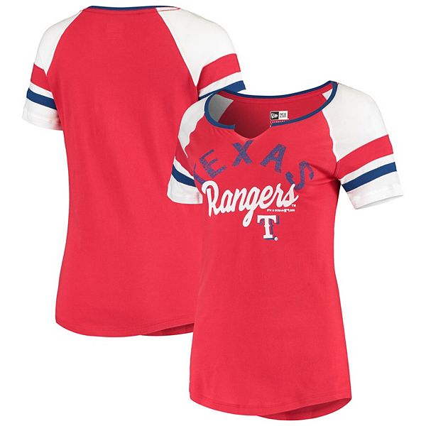 Women S New Era Red Texas Rangers Striped Sleeve V Notch T Shirt